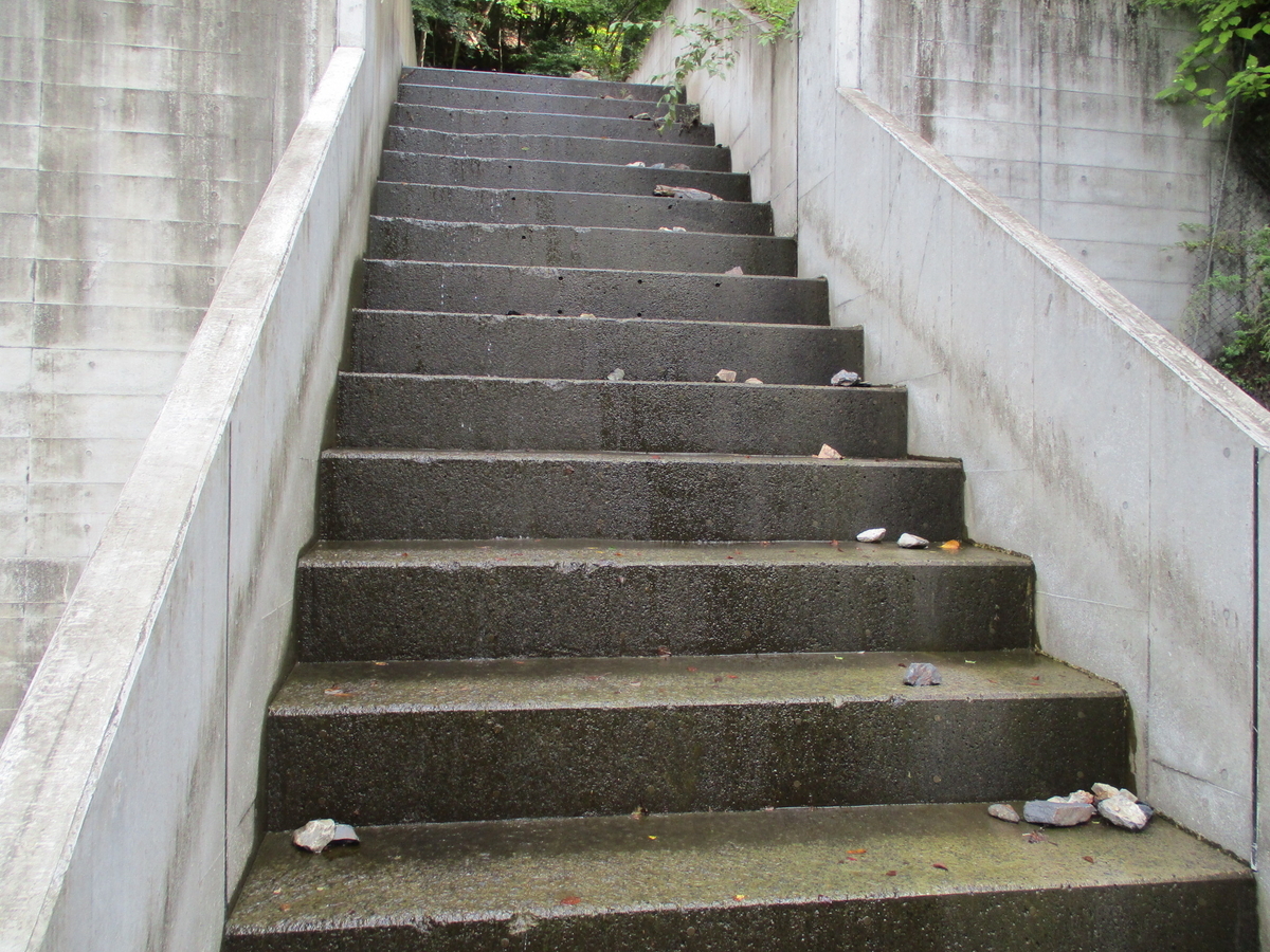 👻水路だと思うだわニャン、橋の下で階段は無くなっているだわニャン。
