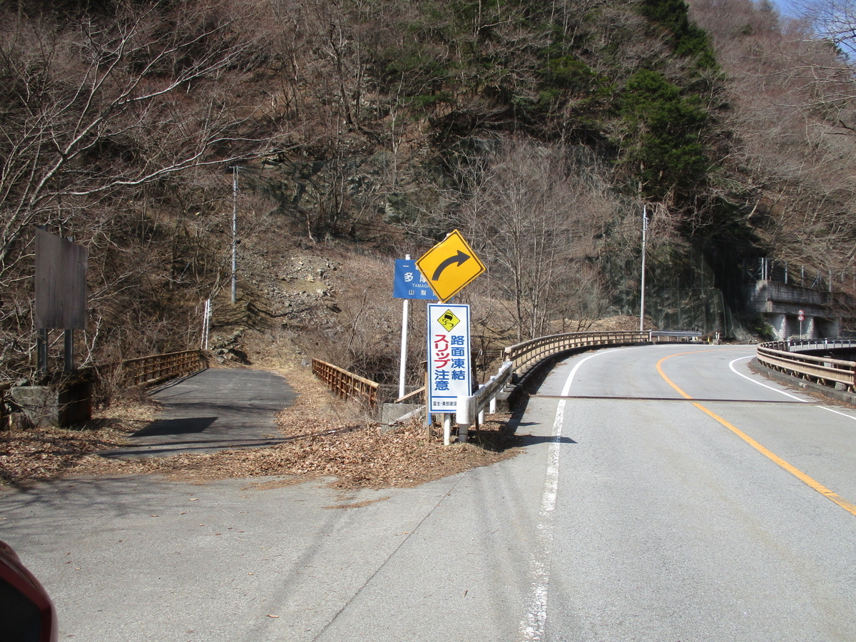👦C地点がバス停終点の丹波山村役場、D地点が多摩川の始まり付近。
